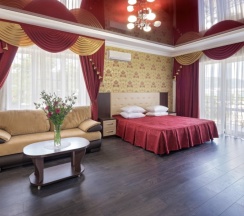 Номер категории «Люкс с балконом» отличается элегантным стилем. Большая гостиная соседствует со светлой спальней, что представляет собой идеальное решение для долговременного проживания 4 человек. А возможность размещения дополнительной детской кроватки делает номер замечательным местом для семейного отдыха. Просторный двухкомнатный номер с двуспальной кроватью, диваном и ванной комнатой.