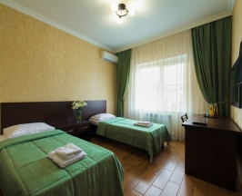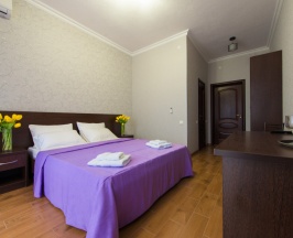 Прекрасный номер, архитектурное решение которого создает ощущение пространства и наполненности светом и воздухом. Просторный однокомнатный номер с двухспальной кроватью, диваном и ванной комнатой. В номере имеется все то, что требуется для комфортного проживания 4 человек.