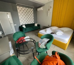 Останавливались на ночь по пути домой с моря, бронь номера по предоплате на карту. Все очень понравилось, у нас был номер люкс, в номере холодильник, микроволновая печь,чайник,кофе, чай, вода бесплатно, единственный минус это отсутствие мыльных принадлежностей для душа, их нужно приобретать отдельно, за 7000 руб сутки мне кажется это все таки должно быть там)