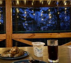 В домике тепло, уютно, приятный аромат от полотенец, постельного белья. Менеджер базы всегда была на связи. Отличный отдых от городской суеты получился. Вроде рядом с городом, но в то же время отдельно в лесу.
