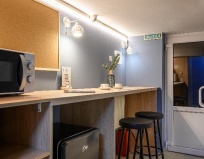 На первом этаже в холле холодильник, микроволновка, гладильная доска, кулер, даже есть ячейки для хранения, в которых можно бесплатно оставить вещи после выезда из номера и погулять , если есть время