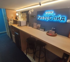Мини-отель «Риверсайд» расположен в историческом здании доходного дома Вяземской в Санкт-Петербурге. Номера оснащены собственной мини-кухней и балконом. Стоимость номеров начинается от 2500 рублей в сутки. В отеле есть лифт с музыкальным сопровождением поездки. Стойка регистрации работает с 10:00 до 21:00, ночью можно обратиться к удалённому администратору. В отеле есть мини-кухня, гладильная доска и утюг.