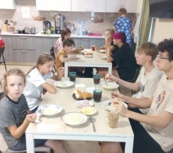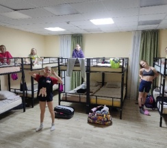 Заехали спортивной командой (дети от 9 до 15 лет) с 7 по 11 сентября 2024. Детей разместили по 2 комнатам: в одну девочки, в другую мальчики. Кровати двухярусные, нескрипучие, с хорошими матрасами и отличным постельным бельём. В комнатах, санузлах чисто, вода всегда горячая с хорошим напором, есть горячие змеевики для сушки вещей в санузлах. Коридоры очень красиво оформлены книги и на стенах фото писателей, актёров и музыкантов. Мы заказывали завтрак и ужин. Еда вкусная, много (с добавкой) и как домашняя. Персонал приветливый накрывают и убирают, комната для питания уютная, чистая и можно телевизор посмотреть. На улице есть мангальная зона с крутой зоной и столиками. Так де можно постараться с сушкой всего за 300руб. В этом же здании с противоположной стороны магазин с продуктами алкоголем. Работает круглосуточно и без выходных. Отличный гостевой дом. Всем рекомендую. Оценка 5++++