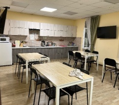 Место супер. Были проездом. Позвонили сюда в 12 ночи, заселились в час ночи. Нас радушно приняли, всё показали, всё объяснили. В спальных комнатах удобные двуспальные кровати, вешалка, шкафчики. Большая комната для приёма пищи с несколькими холодильниками, большими столами, посудой, плитой, термоподом, микроволновкой. Приятный душ и туалет. На улице есть столики под навесом, рядом круглосуточный минимаркет. Всё было очень приятно и мило.