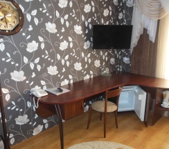 Номер категории "люкс" по достоинству оценят и солидные бизнесмены, и семейные пары с детьми, и счастливые молодожены. В номере имеются две комнаты - просторная спальня и уютная гостиная. Возможна установка дополнительного места ( раскладушка). Ежедневно в номере проводится влажная уборка. Смена полотенец и постельного белья производится один раз в три дня.