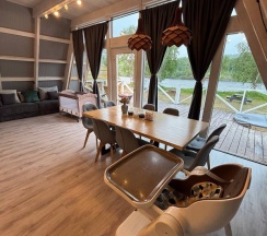 Отдыхали 13.11.22 г., потрясающий домик (сканди 1), думаю, другие такие же. Хозяева продумали каждую мелочь, есть зоны для детей на улице-площадка, качели и внутри дома-настольный футбол. Есть кофе, сахар, ушные палочки, печенье, шампуры, фумигатор, сушилка для обуви и многое другое, казалось бы мелочи, но очень приятно и удобно. Есть камин внутри дома, домик обогревается теплыми полами и радиаторами. Мангальная зона в отдельном домике, не нужно "шашлычнику" мерзнуть, пока другие в тепле. Ну, и отдельная плюшка-выход к реке и смотровое большое окно в доме и веранда на нее. Спасибо хозяевам, обязательно еще приедем.