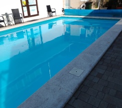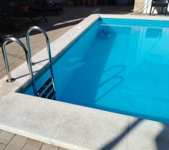 Бассейн теплый,шезлонги
