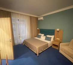 Отличный отель! Удобное расположение. Близость к морю, набережной, магазинам. На территории есть свой бассейн с подогревом. Даже зимой очень тепло купаться) Завтраки есть. Шведский стол. Всё вкусно, сытно, широкий выбор. Из минусов: с некоторых номеров (не со всех) открывается совсем 👎 вид. Точнее с номеров которые выходят на заднюю часть отеля( со всех), и с некоторых выходящих по бокам. По возможности берите номера с видом вперёд (на бассейн). Но в целом отличный отель, всем рекомендую 👍