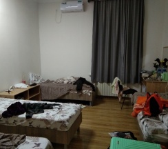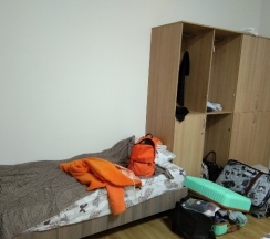 Незначительные минусы: больнично-зелёные и немного помятые стены, с улицы все слышно, грязные окна. Горячую воду в душе надо дождаться (придется долго ждать).