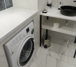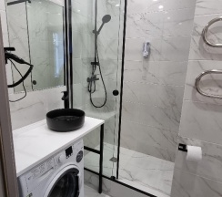 Тихие уютные апартаменты. Есть стиралка, телевизор, микроволновка, фен, кофе машина, номер убирают, кондиционер, подогрев пола в ванной. Соседей не слышно.