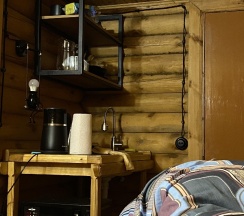 Останавливались с подругой в домике из бруса. Очень понравилось. Чисто, уютно, есть всё необходимое (холодильник, микроволновка, чайник, посуда). Очень отзывчивый хозяин, всё о чем просили (дополнительное полотенце, эл.плиту, фен) принёс. Территория красивая, ухоженная. На улице было прохладно, но в домике тепло. Хозяин предварительно включил отопление, чувствуется забота о своих гостях. Рядом автобусная остановка, 15 минут и мы в санаторно-курортной зоне. Автобус (3) ходит каждые 15 минут. Рекомендую.