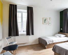 Удачное расположение, чисто, стильно. У нас семья большая, 6-местный номер с собственным санузлом брали оба раза.