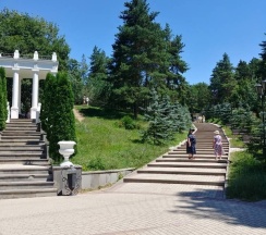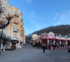 Отличный номер, двухспальная кровать, тв, душ, туалет, умывальник. Кухня с плитой, холодильником. Все чисто, опрятно. Небольшой спортзал (дорожка, турники, комбо-аппарат сидячий (не помню название)). Можно заказать баню с дубовым веником (не заказывал, не фанат). Нет ощущения "все за ваши деньги". Вход в огромный федеральный парк - 5 минут пешком. На входе - кафе (не заходили пока) и можно сфотографироваться с птицами (орёл, филин, павлин). Сам парк - это что-то. Его не обойти за день. Очень большой. Совет: если пришли в парке к канатной дороге и очередь до асфальтовой дороги - то сразу прикиньте, что ждать около 2 часов. Мы простояли сегодня 2 часа. Если бы кто-то сказал, что придется так долго ждать - мы пошли бы пешком (это не простая задача - подъем, кажется, около 700 метров) до конечной станции.