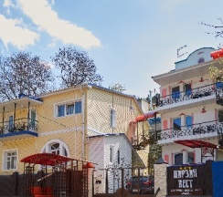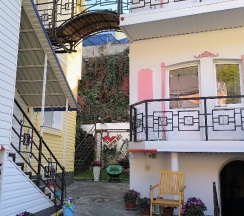 Хороший бюджетный вариант с отличным расположением. Номера не большие с отдельным входом. Жили во втором корпусе. Окна (без москитной сетки, возможно ее ставят летом) выходят на балкон по нему же спуск по винтовой лестнице. Номера чистые, но немного темные, свежий ремонтом. Ванная просторная с маленьким окном (москитная сетка стоит). Держатель для лейки очень высоко. Мне с моим ростом в 165 см дотянуться можно было только в прыжке. Шланг у лейки требует ремонта, подтекал. Из мыльных принадлежностей только маленькое твердое и жидкое мыло. Фен лежал в тумбе под раковиной. Унитаз расположен очень близко к горячей батарее.