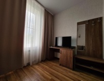 Отличный маленький отель. Долго выбирали, но не ошиблись. Чистота и приятная атмосфера дома окружает с порога. Отель очень удобно расположен. До аэропорта минут 10 на такси, поэтому приехали уже к посадке. Администраторы видела обеих- очень доброжелательные женщины. Сразу решают любой вопрос. В номере очень чисто, идеальное постельное, полотенца. Чайник в номере есть. На улице большая и не одна детские площадки города.через переход магазин Магнит, где можно купить уже готовые блюда. Рядом солидная пиццерия, не успели, но весьма презентабельно.узнавала, в отеле есть номера и на 4 человек. Ожидания наши оправдались . Рекомендую. Да, администратор, предупредила, что вечером двери закрывает, но она на месте. Да, и самое главное с 3-х часов за окном пели , то ли дрозды, то ли соловьи- это, что-то.