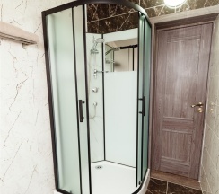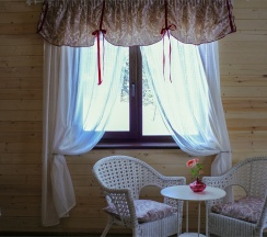 Брали номер без окон ,на одну ночь . Из плюсов: просторный, чистый и уютный номер и цена . Из минусов: дорога до самого домика грунтовка плохая (но,зато тишина и не слышно машины) . В номере стоит входная дверь обычная межкомнатная и слышен шум с коридора. Так на одну ночь всё понравилось, если будет необходимость ещё раз заедем .