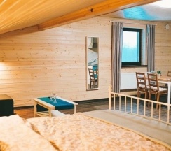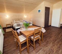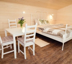 Апартаменты - светлый, уютный номер для всей семьи. Запах дерева, интерьер переносит в комфортную загородную жизнь.