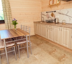 Кухня в номере и отдельный вход с улицы. Светлый и просторный номер делится на зону кухни и зону спальной комнаты. На кухне есть все необходимое для приготовления блюд.