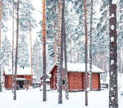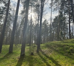 Закрытая территория. Лес. Озеро маленькое с баней. Большое озеро в шаговой доступности. Много черники. Домики правда по-немногу умирают. В летний сезон - дорого.