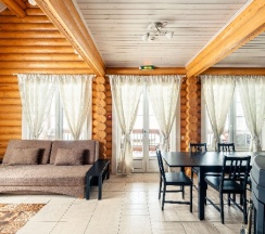 Не понравилось: Все понравилось, кроме того, что у нас был домик самый дальний от дороги, а есть домики почти у шоссе, что не располагает к отдыху на природе. В домике в гостиной и на кухне не хватает света.