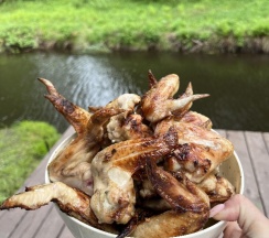 У каждого домика есть мангал и все для мангала. Можно делать гриль и кушать на веранде или в домике.