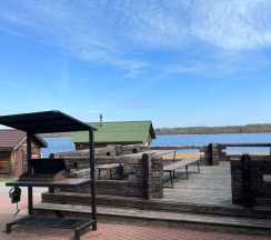 Приезжали на майские праздники, нам очень понравилось, чисто, уютно, красивый вид на воду, удобный пирс, шампуры предоставили на месте, не пришлось с собой возить. Были в 1 домике, 4 спальни и большой удобный диван, постельное чистое и свежее, много полотенец, чистые окна, теплые полы на плитке везде, не замерзли, просторный шкаф в комнате, 1 туалет, но у нас не вызвало проблем в компании на 8 человек, вежливый и добрый персонал, мы видели противоречивые отзывы, но у нас все прошло на 10/10 и с удовольствием приедем еще. Проблем с залогом не было. (Фото постели уже при выезде, до было аккуратнее)