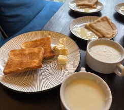 Были на 2х завтраках - шведский стол (вареные и жареные яйца, каша, блинчики, тосты, кофе, чай - привычный набор для завтрака - очень вкусно!)