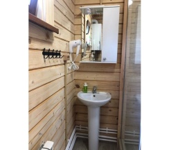 В коттедже 3 спальни, кухня-гостиная оборудованная всей необходимой бытовой техникой, душевая туалет, своя небольшая терраса с прекрасным видом на озеро, также возле каждого коттеджа имеется бесплатный мангал.