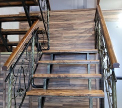 На первом этаже: располагается холл с двуспальным раскладным диваном (на 2-х человек), кухня оснащенная всем необходимым для комфортного прибывания, обеденный стол для большой компании, телевизор, комод, камин, туалет и две душевые. Парная также находится на первом этаже.