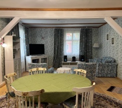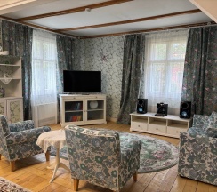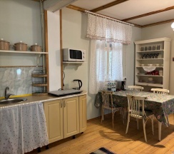 В доме две спальни: большая и малая, просторная гостиная с печью-камином, внимание создателей к деталям интерьера доставит вам особое удовольствие и комфортный отдых.