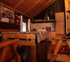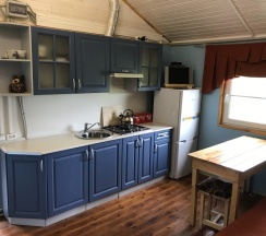 Домики очень уютные, небольшая кухня, где есть всё необходимое. В домиках тепло, так же предлагали дополнительно приобрести дрова, если вдруг замерзнем.