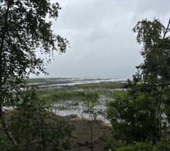 Да, погода немного подвела — было пасмурно и временами моросил дождь, но это никак не испортило общее впечатление от места. База отдыха очень уютная, атмосферная, с красивыми деревянными постройками и живописным видом на природу.