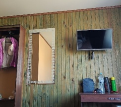 Номера аккуратные, все есть в наличии (кровать, тумба, стол, стул, шкаф, телевизор, холодильник, фен - по запросу).