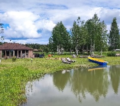 Норм место чтобы отдохнуть от города. Бронировал через T-ID Т-банка, заселение прошло быстро и без проблем. Домики уютные, природа красивая - березовая роща, озеро и тд. Оч. прилично кормят кстати. Из минусов что нет обещанных на сайте велосипедов и конных прогулок. Ну и в принципе развлечений не особо много -рыбалка, грибы собирать да на лодке кататься. Персонал внимательный но иногда шумновато из-за соседей.