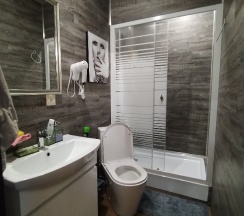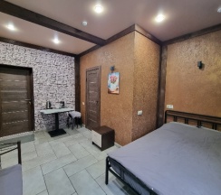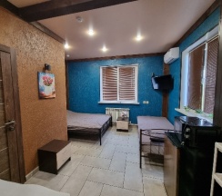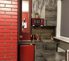 Красивая, уютная гостиница, в номерах чисто, есть холодильник, микроволновка , столовые приборы, кастрюля, сковорода! В гостинице есть кухня, можно приготовить покушать! Удобства в номере, унитаз и кабинка блестят! В номере современный дизайн! Однозначно рекомендую!
