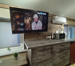 Отель удобно расположен, недалеко от трассы. Приветливый персонал. В номере было все необходимое для комфортного проживания. Чисто, уютно, оригинальные предметы интерьера, все подобрано со вкусом. Мини-кухня с полным набором посуды, микроволновой, чайником и фильтром для воды.