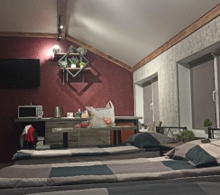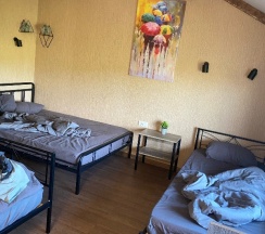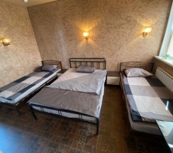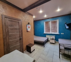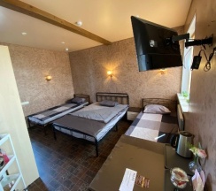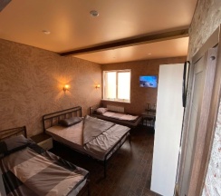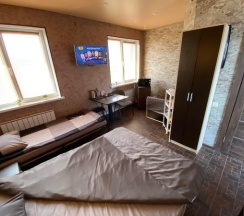Отличное место для отдыха в дороге. Номер чистый,уютный со своеобразным дизайном))).Чистая постель, набор полотенец. Кухонный уголок с холодильником, чайником, микроволновкой. Можно сделать заказ с доставкой, можно здесь же купить продукты и приготовить на общей кухне. Ценник абсолютно демократичный. Единственное, я бы добавила одноразовые тапочки. А в целом все отлично! Спасибо за такую организацию, приятно удивили!