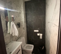 Мы были проездам, ездили к родственникам, изначально не планировали останавливаться в дороге, но переоценили свои силы. Решили все таки переночевать в Питере. Ну и заодно прогуляться по вечернему Питеру. Поэтому выбирали отель в центре. Хорошо, что здесь был свободный номер. Это просто невероятная удача, потому что отель реально классный. Новый , современный, красивый;!!!! С парковкой! Номер в серых тонах. Как я люблю!!! Отличный душевой набор, хорошая сантехника и напор воды. А постель, сказка. Выспались на ура!