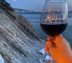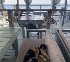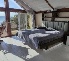 уютное кафе на берегу моря, каждый вечер живая музыка. Красивый вид на море, внизу по лестнице пляж каменный, немного на пляже людей, можно взять в прокат сапы. Вкусная еда и коктейли. Отзывчивый, приветливый и приятный персонал.