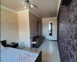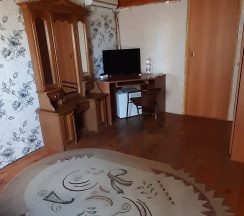 К вашему вниманию двухместный номер-стандарт. Все условия для комфортного проживания: кондиционер, мебель, вся бытовая кухонная техника, WiFi. В номере свой холодильник, также и ванная комната своя, кухня на 3 двухместных номера. Предоставляем ванные принадлежности, тапочки. Вода горячая и холодная круглосуточно. Номер закрывается на ключ. Рядом Магнит, Пятерочка, продуктовый магазин, Красное Белое, рынок, остановки. До моря 850 метров.