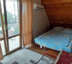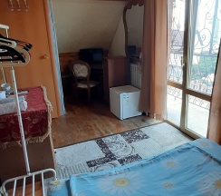 К вашему вниманию номер-эконом. Все условия для комфортного проживания: кондиционер, мебель, вся бытовая кухонная техника, WiFi. В номере свой холодильник, ванная комната на 3 двухместных номера на 1-м этаже. В каждом номере максиму 2 человека. Номер расположен на 3-м этаже. В номере балкон с видом на море и горы. Предоставляем ванные принадлежности, тапочки. Вода горячая и холодная круглосуточно. Номер закрывается на ключ. Рядом Магнит, Пятерочка, продуктовый магазин, Красное Белое, рынок, остановки. До моря 850 метров.