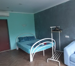 К вашему вниманию номер-студия. Все условия для комфортного проживания: кондиционер, мебель, вся бытовая кухонная техника, WiFi. В номере свой холодильник, также и ванная комната своя и кухня. Предоставляем ванные принадлежности, тапочки. Вода горячая и холодная целый день. Номер закрывается на ключ. Рядом Магнит, Пятерочка, продуктовый магазин, Красное Белое, рынок, остановки. До моря 850 метров. На территории дома есть мангал, можно пользоваться бесплатно.