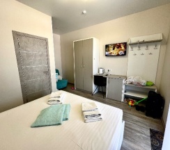 Отличное место! В номерах современный ремонт, чисто, есть все необходимое для комфортного проживания (кондиционер, холодильник, фен и тд). Порадовало,что в отеле есть хорошая кухня, где гости могут готовить,тоже все чисто; можно попросить утюг и отдать вещи в стирку,что очень удобно. Отдельно хочется поблагодарить вежливый и приятный персонал)