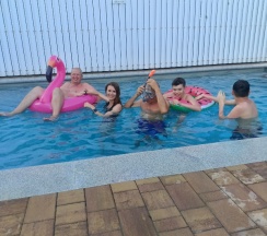 Замечательно, что есть бассейн, мангальная зона, столики во дворе, и самое классное - отдельная кухня, не в номере, где можно готовить.