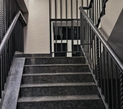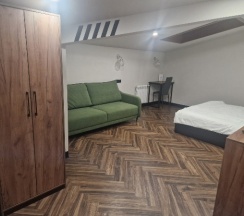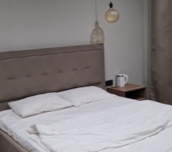 Отдыхали в двухместном номере со всеми удобствами в номере на третьем этаже. Номер большой, есть двухспальная кровать и диван, который раскладывается. Рядом с кроватью и диваном есть розетки, очень удобно заряжать телефон. А, так же над изголовьем висит бра. Телевизор хорошо показывает. На первом этаже хорошо оборудованная общая кухня с большим холодильником и плитой. Есть вся посуда в которой можно что-то приготовить. Тут же столики со стульями, где можно поесть. На кухне в доступе кофе растворимый, чай в пакетиках, сахар. Расположение очень хорошее. Рядом остановки транспорта, кафе на любой вкус и есть где погулять. Спасибо персоналу за доброжелательный приём.