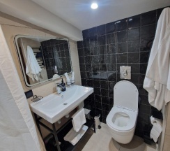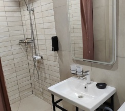 Взяли номер на четыре человека. Номер приятный и чистый, ванная комната красивая и тоже чистая. В ванной есть все нужные принадлежности: Крем-мыло, туалетная бумага, шампунь, кондиционер и есть даже щётки с пастой. Диван и кровать мягкие и удобные. Сама гостиница красивая, администратор вежливый и отзывчивый. Лично мне понравилось!