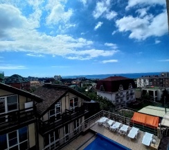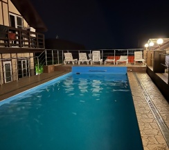 Свой октябрьский отдых в Адлере заканчивали в данной гостинице.Выбирали ее из-за наличия бассейна,чтоб покупаться перед отлётом.Все очень понравилось,вода в бассейне чистая и теплая.Постельное белье и полотенца в номере белоснежные.В ванной комнате есть гели для душа, шампуньки и наборы с зубными щетками.Персонал отзывчивый.Есть магазинчик прям у входа в гостиницу.Так же в кафе, на территории гостиницы, можно покушать домашние блюда.В доступе мангальная зона,можно жарить самостоятельно шашлыки.При бронировании нужно учитывать что до отеля идти все время в горку,для кого-то это может быть неудобно.Нам все понравилось-ожидания и реальность совпали)