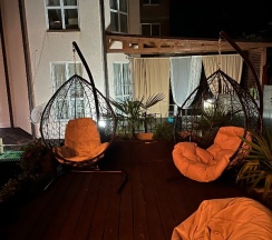 Шикарное место! Данный отель может посоревноваться с многими отелями заграницей! Сервис на максимальном уровне. Есть абсолютно все. Полотенца на пляж и бассейн бесплатные, есть даже крема для загара и после загара. Круги для плавания, матрасы, нарукавники! Честно, я такого никогда не встречала, хотя бывали во многих отелях. Удобная и большая терраса. Мангальная зона, кальяны. Прекрасный бассейн. В номерах чисто. Ванная комната супер чистая! Очень вкусная еда и недорогая. До моря далековато, но были на машине, нам было комфортно. Есть небольшая парковка, но всегда были места.