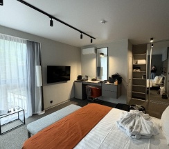 Сказать что ожидания оправдались - ничего не сказать! На месте все ровно так, как описано на сайте. Мы не в первый раз отдыхаем на черноморском побережье и часто сталкивались с тем, что описание не соответствует действительности. В этот раз в действительности оказалось даже немножко лучше, чем описывали 😄. В номере чистота, полотенца, халаты, тапочки, ЕЖЕДНЕВНАЯ уборка, приятный бонус - кофемашина в номере. Wi-Fi на территории выше всяких похвал! Территория облагорожена и благоустроена, плюс территория закрытая, поэтому переживать за детей не приходится. Отдельно нужно отметить прилегающую территорию со скамейками и дорожками вдоль речки. В шаговой доступности дольмен и водопады. На дольмен рекомендую идти в удобной обуви. Разнообразный и вкусный шведский стол, особая изюминка - возможность самостоятельно испечь себе вафли 👍. Удобный трансфер на пляж и обратно, на пляже все оборудовано, лежаки для гостей отеля бесплатные. Персонал отзывчивый и заботливый, с вниманием относится к просьбам гостей!