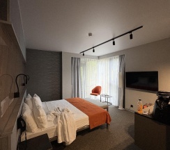 Отличная гостиница для отдыха. Есть прекрасный трансфер в лице Mercedes, который возит на спец пляж и обратно. Питание очень хорошее, бери что хочешь и сколько хочешь. В номерах очень комфортно, есть кондиционер, телевизор. Также на территории много хороших мест, таких как бассейн, сауна, спортзал и библиотека. В итоге, отличное место для отдыха. Приветливый и отзывчивый персонал. Природа просто завораживает.